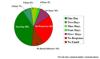 該報(bào)告進(jìn)一步總結(jié)到,60%的網(wǎng)站客戶希望更多互動(dòng)但許多電子商務(wù)企業(yè)無(wú)法回應(yīng)電子郵件且不能提供足夠的電話支持。也有很多電子商務(wù)企業(yè)提供電子郵件支持,比如說(shuō)etoys,但對(duì)于如潮水般洶涌而來(lái)的電子郵件聯(lián)絡(luò)他們顯然沒有什么準(zhǔn)備以至于處理結(jié)果符合客戶預(yù)期的郵件少之又少。如果處理的好