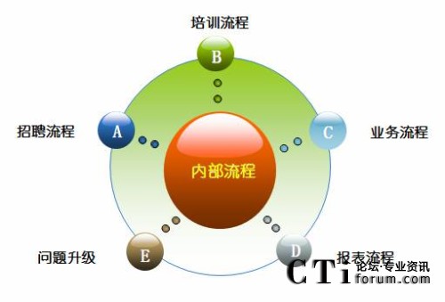 呼叫中心的流程按其用途和作用點不,又分為內部流程和外部流程兩部分,外部流程主要是指和相關部門間的流程,而內部流程又包括有: