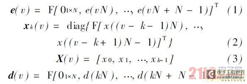 F 表示對(duì)2N×2N 的矩陣進(jìn)行FFT 變換,若v 表示信號(hào)幀序號(hào),而diag 表示對(duì)角矩陣運(yùn)算,則: