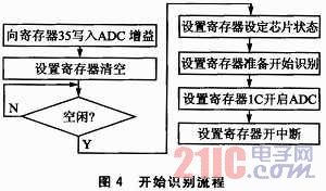 、坶_始識(shí)別。設(shè)置幾個(gè)相關(guān)的寄存器,即可開始語音的識(shí)別。圖4是相關(guān)的流程。ADC通道即為麥克風(fēng)輸入通道,ADC增益也就是麥克風(fēng)音量,可設(shè)定值00H~7FH,建議設(shè)置值為40H~6FH,值越大代表MIC音量越大,識(shí)別啟動(dòng)越敏感,但可能帶來更多誤識(shí)別;值越小代表MIC音量越小,需要近距離說話才能啟動(dòng)識(shí)別功能,好處是對(duì)遠(yuǎn)處的干擾語音沒有反應(yīng)。本文中設(shè)定值為43H。