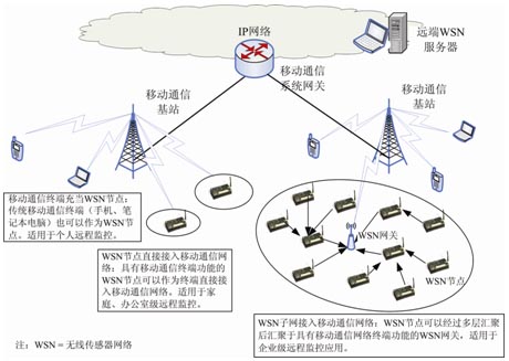 圖:無線傳感器網(wǎng)絡和移動通信的結(jié)合
