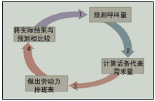 預(yù)測呼叫量是第一步,是創(chuàng)建呼叫中心呼叫量預(yù)測的方法,這種預(yù)測建立在對歷史呼叫量和當前呼叫量數(shù)據(jù)分析的基礎(chǔ)上。根據(jù)第一步的結(jié)論,計算話務(wù)代表需求量,以及在每天不同時段座席代表的需要量。然后,可做出勞動力排班表,創(chuàng)建一個與需求相匹配的勞動力上班時間表。最后一步是將實際結(jié)果與預(yù)測相比較。