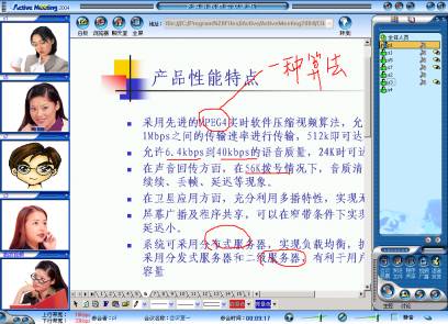 據(jù)該公司技術(shù)總監(jiān)李明先生介紹,Active Meeting2004是為了迎合寬帶運(yùn)營而專門設(shè)計開發(fā)的。首先,服務(wù)器引用"級聯(lián)"方式,通過系統(tǒng)服務(wù)器端Active Center的"平衡分流"設(shè)計,使得任何單位的會議和交流能夠流暢的進(jìn)行。
