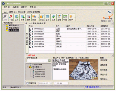 "短信王"的彩信模塊操作起來非常方便。以某服裝專賣店為例,通過使用"短信王"的企業(yè)彩信功能,它可以向廣大會員顧客發(fā)送最新的服裝款式信息,而這個(gè)信息除了文本介紹外,同時(shí)還附帶清晰的圖片。會員足不出戶就可以在第一時(shí)間看到最新的上架服裝,并對自己喜歡的款式回復(fù)短信下單。會員享受了超值服務(wù)、節(jié)省了時(shí)間,對于服裝店來說,也獲得了一種高效的經(jīng)營方法并加深了與客戶之間的關(guān)系。