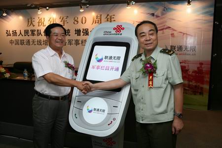 7月25日下午,中國聯(lián)通與解放軍總政治部宣傳部、解放軍報社等重要媒體共同宣布,將正式開通無線增值業(yè)務軍事欄目,將為聯(lián)通1.5億用戶提供軍事資訊服務。