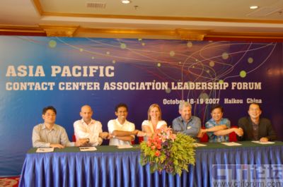 2007年10月18-19日,亞太呼叫中心領(lǐng)導(dǎo)人會(huì)議在中國(guó)?谂e行。中國(guó)大陸CNCCA、香港HKCCA、臺(tái)灣TCCDA以及澳大利亞ATA和CCMA、新加坡CCAS、印度尼西亞ICCA等共7個(gè)亞太地區(qū)呼叫中心協(xié)會(huì)的領(lǐng)導(dǎo)人參與了會(huì)議研討。各協(xié)會(huì)一致決定發(fā)起成立“亞太客服與呼叫中心聯(lián)盟”(Asia Pacific Contact Center Association Leaders),就涉及亞太區(qū)域的呼叫中心協(xié)會(huì)間合作和溝通事務(wù)發(fā)揮領(lǐng)導(dǎo)作用。亞太呼叫中心協(xié)會(huì)領(lǐng)導(dǎo)人簽署合作備忘錄