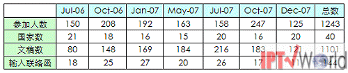 FG IPTV第七次會(huì)議共有來(lái)自全球近160名專家參加了會(huì)議,共收到文稿119篇。中國(guó)有20名專家參加了會(huì)議,提交文稿37篇,文稿主要集中在體系架構(gòu)、需求、安全、服務(wù)質(zhì)量、中間件等方面。此次會(huì)議的所有輸出文檔將輸入到相應(yīng)的研究組(SG)當(dāng)中。此次會(huì)議由于要對(duì)所有的輸出文檔進(jìn)行最后的整理、完善,因此日程非常緊張,每個(gè)工作組都幾乎每天工作到深夜,以便能夠保證所有輸出的工作文檔的質(zhì)量。