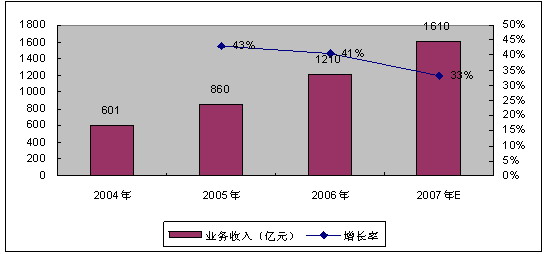 賽迪顧問預(yù)測(cè)2007年底,我國(guó)增值電信業(yè)務(wù)市場(chǎng)收入有望超過1600億元,增速高達(dá)33%,移動(dòng)增值業(yè)務(wù)收入規(guī)模將達(dá)980億元左右,占比高達(dá)61.25%。2007年增值電信業(yè)務(wù)經(jīng)營(yíng)企業(yè)的數(shù)量將會(huì)出現(xiàn)負(fù)增長(zhǎng),量的下降帶來(lái)質(zhì)的提升,表明增值電信業(yè)市場(chǎng)已經(jīng)趨于良性發(fā)展。