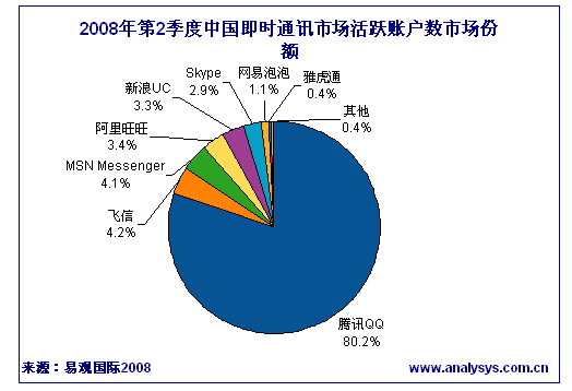 2008年第2季度中國(guó)即時(shí)通訊活躍帳戶數(shù)達(dá)4.26億