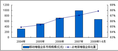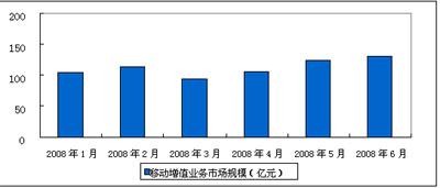 圖1 2008年1-6月中國(guó)移動(dòng)通信增值業(yè)務(wù)市場(chǎng)規(guī)模