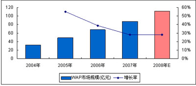 圖7 2008年中國(guó)WAP市場(chǎng)規(guī)模預(yù)測(cè)