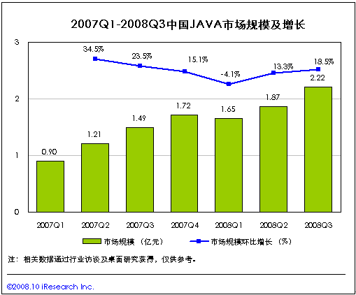 艾瑞咨詢研究發(fā)現(xiàn),2008年第三季度JAVA市場(chǎng)規(guī)模為2.22億,同比增長(zhǎng)48.2%.在奧運(yùn)影響移動(dòng)增值市場(chǎng)規(guī)模整體升溫的環(huán)境下,中國(guó)移動(dòng)自9月1日進(jìn)一步屏蔽超過數(shù)量限制的單機(jī)游戲。