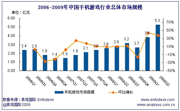 2009年第2季度中國手機游戲市場規(guī)模達(dá)5.3億