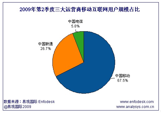 易觀(guān)國(guó)際(Analysys International)研究發(fā)現(xiàn),相比2009年第1季度,中國(guó)聯(lián)通、中國(guó)電信的移動(dòng)互聯(lián)網(wǎng)用戶(hù)規(guī)模占比都有小幅增長(zhǎng)。尤其是中國(guó)電信,在2009年5月17日正式推出WAP業(yè)務(wù)并輔以豐富應(yīng)用,在某種程度上加速了中國(guó)電信移動(dòng)互聯(lián)網(wǎng)用戶(hù)規(guī)模的小幅攀升。