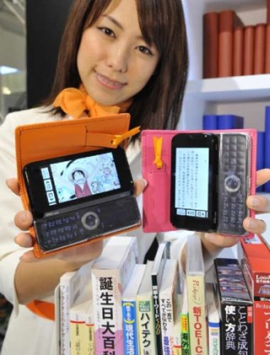 日本第二大電信服務(wù)商KDDI與東芝合作推出以“Biblio”命名的手機,以電子書瀏覽器作為最大賣點。該機內(nèi)建7GB內(nèi)存,3.5吋觸摸式液晶顯示屏,外型及包裝設(shè)計都和Amazon Kindle相似,配備WIFI、510萬像素鏡頭及電子辭典功能。