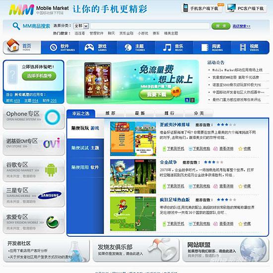 短暫開通的中國移動Mobile Market網(wǎng)站顯示,中國移動手機應用程序商店的正式名稱為Mobile Market移動應用商場,中國移動自己簡稱其為MM。