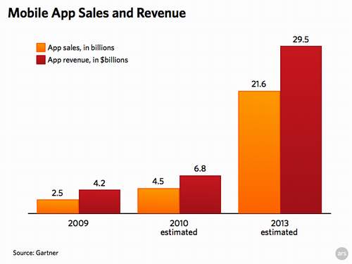 蘋果應(yīng)用商店2010年的收入則有望達(dá)到45億美元,其中蘋果的分成約為13.5億美元