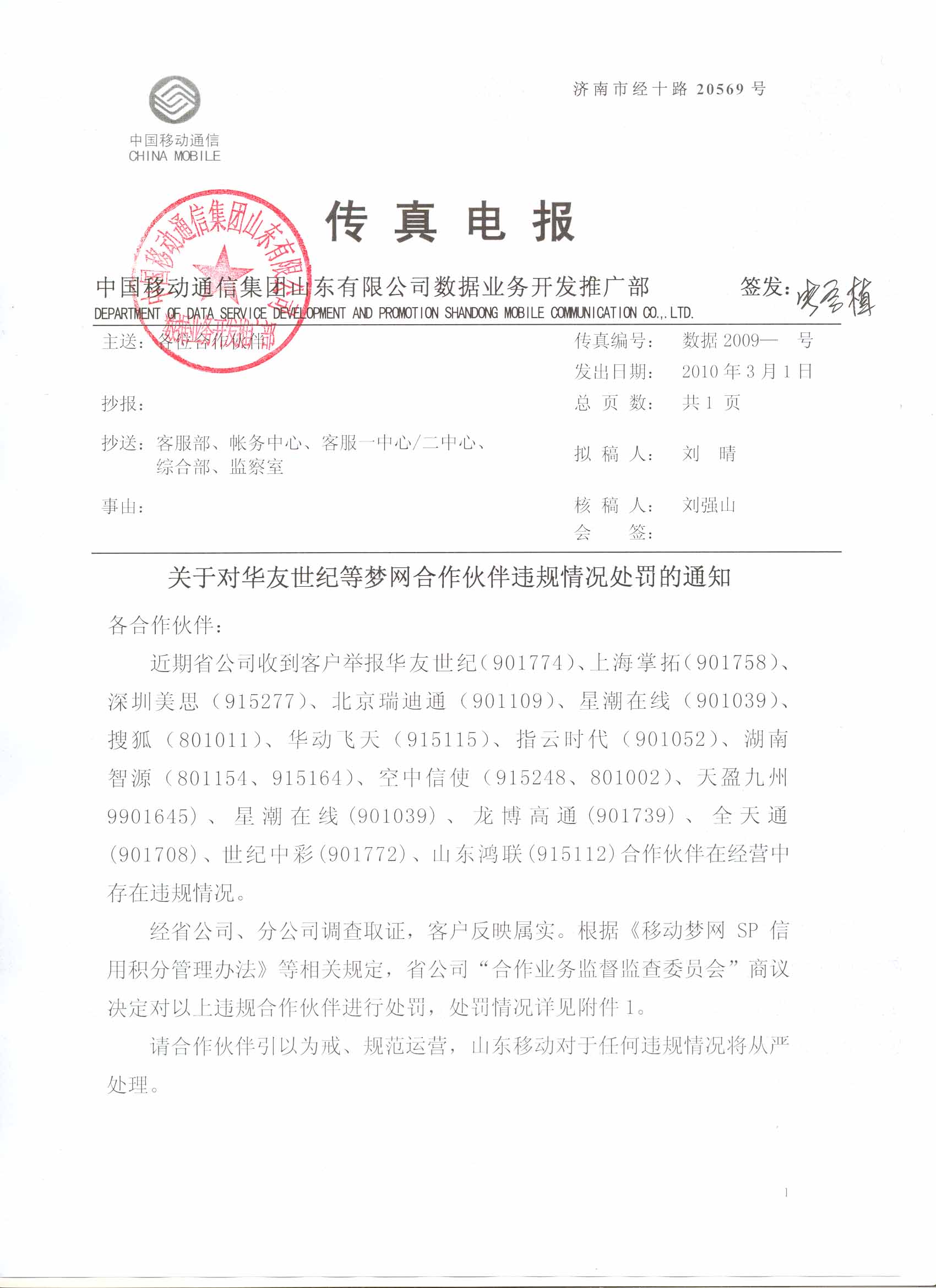 | 12 | 星潮在線 | 901039 | 10665366 | 該公司“生活服務”業(yè)務,提供代收費服務。 | 暫停該公司“生活服務”業(yè)務(業(yè)務代碼:XXSHFF )在山東地區(qū)的服務2個月?鄢庞梅e分20分。 |