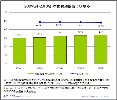 電信運營商計費政策重大調(diào)整對整個移動增值市場產(chǎn)生巨大影響力,2010Q1移動增值市場規(guī)模為33.5億,與09Q1基本持平。電信運營商實施計費通道的強力治理措施,對產(chǎn)品線以WAP計費為主的企業(yè)造成嚴重生存壓力,與此同時采用短信計費的移動增值產(chǎn)品營銷也受到不同程度影響。實現(xiàn)由單一移動增值業(yè)務向移動互聯(lián)網(wǎng)服務進行戰(zhàn)略轉(zhuǎn)型,是SP企業(yè)戰(zhàn)略發(fā)展的實踐路徑。艾瑞認為電信運營商實施全新的合作伙伴計費政策,將重新構(gòu)建移動增值市場秩序。