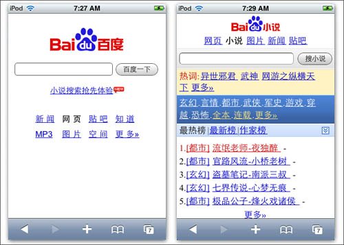 百度推出掌上百度、百度手機輸入法、百度快搜、百度地圖移動版等產品后,如今又推出了百度Wap小說搜索頻道。以后我們可以直接拿手機上百度看小說,不用麻煩先在電腦上搜索好并下載復制過來,這給廣大用戶在線閱讀提供了方便。