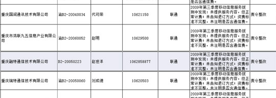 經(jīng)四川省工商行政管理局官方網(wǎng)站查詢發(fā)現(xiàn),成都融特通信技術(shù)有限公司注冊(cè)人資本為100萬,法人為趙世洋。注冊(cè)信息顯示,成都融特通信技術(shù)有限公司及其關(guān)聯(lián)公司——重慶融特通信技術(shù)有限公司,其主營(yíng)業(yè)務(wù)為通信產(chǎn)品的技術(shù)開發(fā)。而搜狐IT獲得的一份資料表明,成都融特通信技術(shù)有限公司目前仍然是中國(guó)聯(lián)通廣東、重慶、四川等省市的增值業(yè)務(wù)提供商,并于2009年第三季度因違規(guī),被中國(guó)聯(lián)通處罰,要求其進(jìn)行整改。