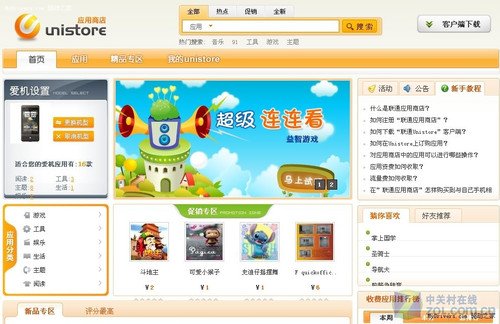 目前聯(lián)通應(yīng)用商店共有1125款應(yīng)用,其中包含445款游戲、208款閱讀、294款主題、生活軟件113款、工具軟件49款,娛樂應(yīng)用16款。目前仍處于測(cè)試階段,還沒有應(yīng)用開發(fā)商進(jìn)行大規(guī)模的程序提交。