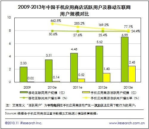 2010年中國手機應用商店用戶增速遠超移動互聯網