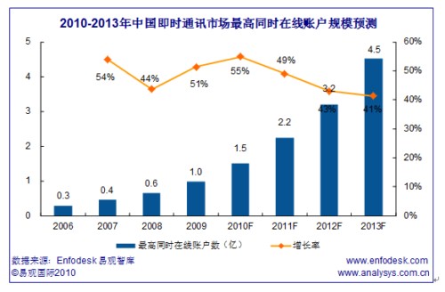 2013年中國IM市場最高同時在線賬戶規(guī)模將突破4億