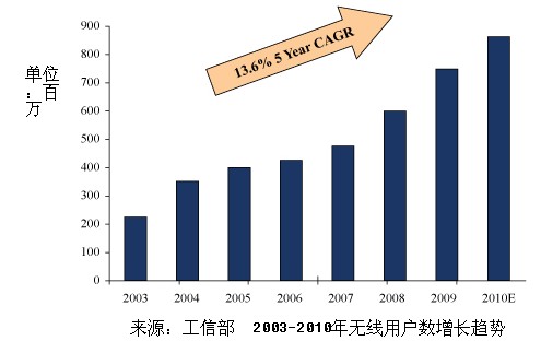 中國的移動增值服務和移動支付解決方案的發(fā)展與手機行業(yè)的增長密切相關。根據(jù)工信部的調(diào)查,截止2009年年底,有7.47億人擁有手機,其中2.33億的用戶曾至少使用一次手機瀏覽。工信部2010年4月發(fā)布的一份數(shù)據(jù)顯示,中國的無線用戶數(shù)在2010年底預計將達到8.64億,復合年均增長率達14%,國內(nèi)電信行業(yè)的總營收在2010年將增長到4250億元。中國手機產(chǎn)業(yè)快速發(fā)展的趨勢主要是中產(chǎn)階層的推動以及3G的發(fā)展。此外,艾瑞預測,手機瀏覽器的的用戶數(shù)可能增長125%達到2012年的5.24億。