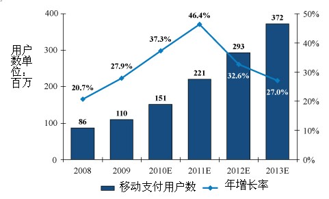 基于“中國計算機世界”的研究預測,中國移動支付用戶在2009年底達到1.1億,預計將在2013年超過3倍。由于需求大幅提高,電信運營商會繼續(xù)在每個省推出移動支付解決方案網(wǎng)絡。反過來,也會刺激第三方平臺和供應商的發(fā)展。