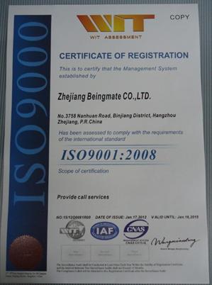 浙江貝因美科工貿(mào)股份有限公司呼叫中心于2012年1月17日通過ISO9001:2008質量管理體系認證,并獲得中國CNAS和美國ANAB認可的證書。這標志著,貝因美呼叫中心成為國內(nèi)嬰童業(yè)界少數(shù)通過ISO9001國際質量管理體系的審核、并獲得ISO9001:2008質量管理體系認證證書的客戶服務中心之一。