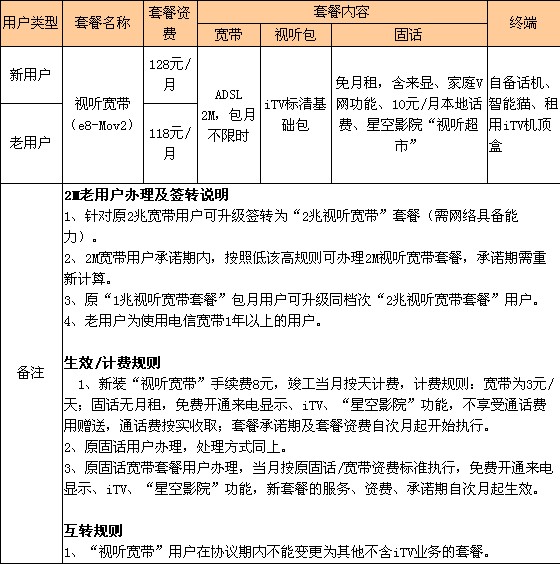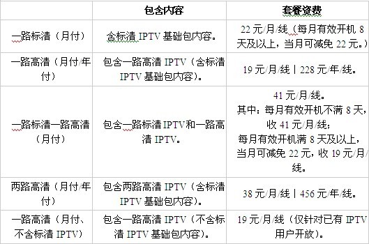 1)上述表內(nèi)費(fèi)用涉及的資費(fèi)僅含IPTV使用資費(fèi),不含寬帶業(yè)務(wù)使用費(fèi)。