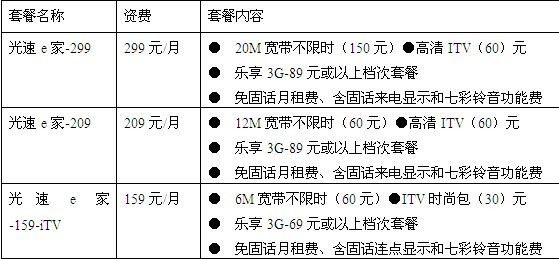 江蘇電信資費(fèi)除了基本的時(shí)尚包和全能包之外,還采取了和現(xiàn)有E家套餐捆綁的方式進(jìn)行推廣。