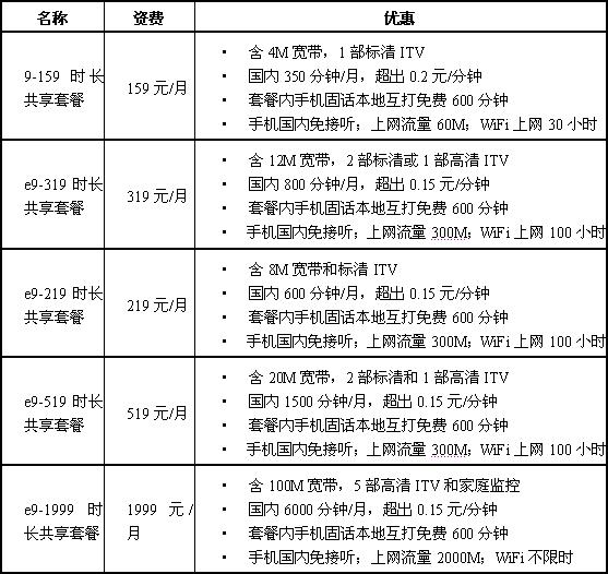注:中國電信固定電話用戶(未安裝中國電信寬帶):在時(shí)尚包和全能包收費(fèi)基礎(chǔ)上另增加10元/月使用費(fèi)。