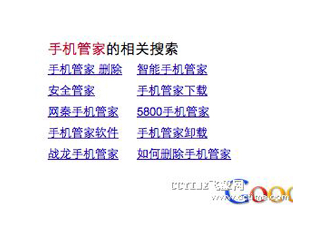 飛象網(wǎng)記者發(fā)現(xiàn)目前在搜索引擎中,伴隨著輸入“手機(jī)管家”一詞后出現(xiàn)的還有如“手機(jī)管家刪除”、“手機(jī)管家卸載”、“如何刪除手機(jī)管家”等詞語(yǔ),而這些詞所呈現(xiàn)出的正式眾多用戶(hù)對(duì)于如何在自己手機(jī)中刪除這些手機(jī)管家的操作疑問(wèn)。其中涉及如5800這樣的Symbian系統(tǒng)的手機(jī),以及像DesireHD、Desire S、三星i9000等時(shí)下熱銷(xiāo)的Android機(jī)型。