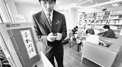 2010年4月16日下午,國(guó)內(nèi)首個(gè)G3閱覽室在杭州市下城區(qū)圖書(shū)館內(nèi)建成并免費(fèi)開(kāi)放,實(shí)現(xiàn)了移動(dòng)信息技術(shù)與公共圖書(shū)館的有機(jī)結(jié)合。圖為讀者正在G3閱覽室里通過(guò)G3手機(jī)閱讀器免費(fèi)閱讀。