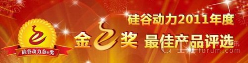 硅谷動(dòng)力2011年度“金e獎(jiǎng)”評(píng)選活動(dòng)入圍產(chǎn)品選擇將會(huì)基于硅谷動(dòng)力原創(chuàng)e值算法確定提名入圍產(chǎn)品,再經(jīng)過(guò)為期一個(gè)月網(wǎng)友投票,最后在綜合組委會(huì)專(zhuān)家評(píng)審團(tuán)意見(jiàn)進(jìn)行全面評(píng)價(jià),推選出涉及整機(jī)、數(shù)碼影音、企業(yè)應(yīng)用和DIY四大類(lèi)28條產(chǎn)品線(xiàn)的“金e獎(jiǎng)”最佳產(chǎn)品。