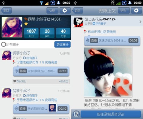 今年9月6日,夢想兄弟正式發(fā)布基于移動互聯(lián)網的社交工具語音微博,這款軟件結合了微博收聽人物、話題及智能手機特有的地理位置服務等元素,用戶可以實現直接錄音發(fā)布語音信息的功能,并且不收取任何費用,僅消耗流量。