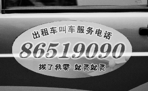 圖:東陽(yáng)出租車(chē)門(mén)上印著叫車(chē)電話號(hào)碼