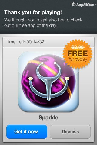 怎樣有效的將應(yīng)用貨幣化呢?簡單的說,我們首先需要判斷當前用戶群的客戶終身價值,然后通過一系列方法使該價值得到持續(xù)的提升;這些方法包括“應(yīng)用內(nèi)”的普通廣告、產(chǎn)品體驗廣告、來自相同發(fā)布商的其他應(yīng)用信息、相關(guān)增值產(chǎn)品與服務(wù)等。下圖所示的就是在應(yīng)用中推銷另一款產(chǎn)品的典型案例。