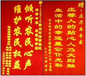 專家們辛勤耕耘贏得了農民的認可,千里迢迢送去了錦旗和感謝信,并在2010年12316專家評選活動中,冒著大雪趕去為他們的貼心人投上了自己寶貴的一票。