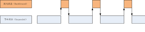 為了節(jié)約電池的電量,智能手機上的操作系統(tǒng)的一個基本策略是,盡量減少正在運行的程序,這個道理很簡單,運行的程序越多,需要耗費的 CPU 計算時間就越多,電量就省不下來。下面的圖是蘋果 iOS 設(shè)備應(yīng)用程序調(diào)度狀態(tài)圖,事實上蘋果設(shè)備是除了用戶正在操作的程序,其他打開的程序進程盡可能都放到“掛起(Suspended)”的狀態(tài)下。在“掛起”的狀態(tài)下面,程序進程處在休眠狀態(tài),不耗費 CPU 計算能力。當(dāng)用戶沒有對設(shè)備進行操作的時候,整個系統(tǒng)處在休眠的低電狀態(tài)。(這里進程的意思是:程序運行實例)