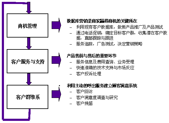 。。發(fā)掘現(xiàn)有客戶來增加收入一直被視為一個公司成功的重要手段。企業(yè)希望從更高角度分析客戶,了解客戶需求,新的直銷渠道為公司在關(guān)心他們重要客戶身上提供了更多的選擇,并能拓展為新業(yè)務(wù),而呼叫中心成為企業(yè)實(shí)施CRM戰(zhàn)略中的最基本、最關(guān)鍵的部分。