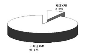 本次問(wèn)卷調(diào)查共有2461個(gè)有效樣本,其中知道CRM的有220份,占8.33%,不知道的有2421份,占91.67%。這說(shuō)明,從國(guó)外引入到現(xiàn)在,CRM在我國(guó)還遠(yuǎn)未普及。