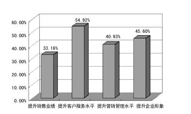 從結(jié)果上看,企業(yè)實(shí)施的最大動(dòng)力是“提升客戶服務(wù)水平”。這說(shuō)明,企業(yè)對(duì)CRM的理解還僅僅停留在初級(jí)階段,尚沒(méi)有充分認(rèn)識(shí)到對(duì)企業(yè)提升銷售業(yè)績(jī)、營(yíng)銷管理水平有著重要作用。這其實(shí)也反應(yīng)了我國(guó)企業(yè)目前的管理水平。