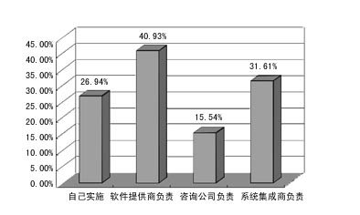 在用戶如何實(shí)施CRM系統(tǒng)的調(diào)查中,已應(yīng)用CRM的單位一般都是由自己或軟件提供商負(fù)責(zé),而沒(méi)用CRM的企業(yè)則大多期望能由軟件提供商負(fù)責(zé)。這說(shuō)明,用戶實(shí)施CRM的主體意識(shí)還不夠強(qiáng)。
