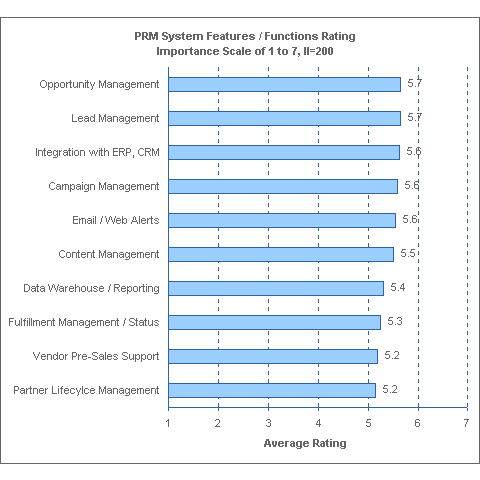 根據(jù)我公司在8月所做的一份為期兩周的網(wǎng)上調(diào)查顯示,人們最希望PRM具有的特點是機會/領導管理以及能與其它企業(yè)管理軟件(CRM/ERP)相結合。這份調(diào)查收集了約200份來自渠道經(jīng)理、渠道伙伴、軟件供貨商和IT、電信、金融服務以及生產(chǎn)行業(yè)的顧問的回答。