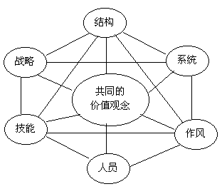 按照麥肯錫以及科特勒的綜合觀點,前面三個要素戰(zhàn)略、結(jié)構(gòu)和系統(tǒng)被認(rèn)為是最成功的硬件;后面四個要素作風(fēng)、人員、技能和共同的價值觀念是軟件。每個組織都和總體環(huán)境的某個部分相互影響,相互作用,并且把這一部分成為相關(guān)環(huán)境,并且指出最能適應(yīng)環(huán)境的公司必將獲得成功。