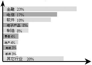 CRM的應(yīng)用已經(jīng)覆蓋了幾乎所有的行業(yè),典型行業(yè)客戶應(yīng)用案例和效果為其他企業(yè)采取行動提供了樣板。這些行業(yè)包括銀行、保險、證券、基金、電信、郵政、制造、醫(yī)藥、零售、地產(chǎn)、IT、傳媒、交通和物流等。在整個市場中,主要行業(yè)的占有率情況參見下圖: