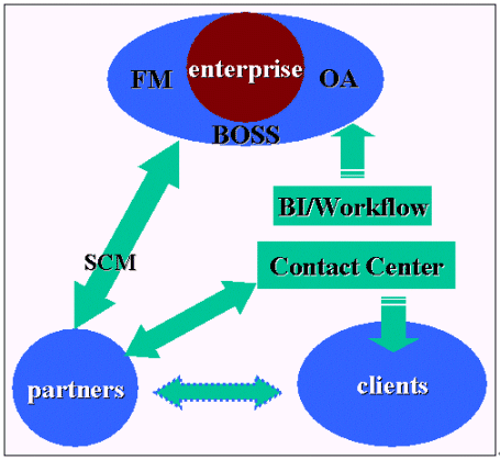 根據(jù)上面的分析SCN新一代客戶聯(lián)絡(luò)中心建成后將具備較強(qiáng)的雙向交互能力,為了更好的統(tǒng)一和完善整個(gè)客戶關(guān)系管理框架,我們希望盡可能的將企業(yè)內(nèi)外的所有溝通都綜合到一個(gè)平臺(tái),他融合了企業(yè)的主頁(yè),企業(yè)的客戶聯(lián)絡(luò)中心,企業(yè)的內(nèi)部辦公自動(dòng)化網(wǎng),企業(yè)資源管理系統(tǒng)等這樣客戶只需要通過(guò)這樣的一個(gè)平臺(tái)便可解決所有問(wèn)題,或者說(shuō)是客戶、員工等企業(yè)相關(guān)的任何個(gè)體之間的交流可以有多個(gè)表現(xiàn)形式如電話,電郵,網(wǎng)絡(luò),辦公自動(dòng)化系統(tǒng),短信等等但最終都轉(zhuǎn)移到同一個(gè)平臺(tái)上來(lái)實(shí)現(xiàn)交換。為什么需要這樣呢?只有這樣才能最好的實(shí)現(xiàn)統(tǒng)一信息。信息統(tǒng)一了,我們就可以建立客戶資訊的數(shù)據(jù)倉(cāng)庫(kù)了,有了統(tǒng)一的數(shù)據(jù)信息,任何基于客戶的分析、細(xì)分都可以實(shí)現(xiàn),而客戶的任何遺留痕跡如嗜好,習(xí)慣,忠誠(chéng)度,消費(fèi)意愿等等都可以方便的提取,最后通過(guò)商業(yè)智能輔助進(jìn)行客戶生命周期管理、市場(chǎng)營(yíng)銷、財(cái)務(wù)管理和戰(zhàn)略決策等。形成一個(gè)良性循環(huán)的客戶關(guān)系管理生態(tài)鏈。由于客戶關(guān)系管理將涉及到各部門之間的協(xié)調(diào)和合作,業(yè)務(wù)模式變革等眾多方面,在此不作詳細(xì)的描敘,本人將在另外的文章中專門來(lái)探討客戶關(guān)系管理中長(zhǎng)遠(yuǎn)規(guī)劃的問(wèn)題。